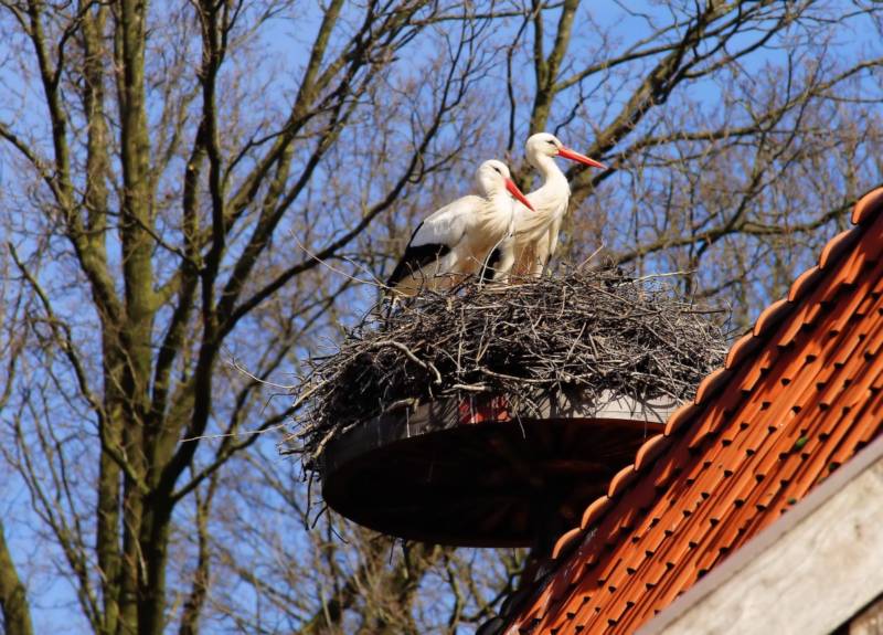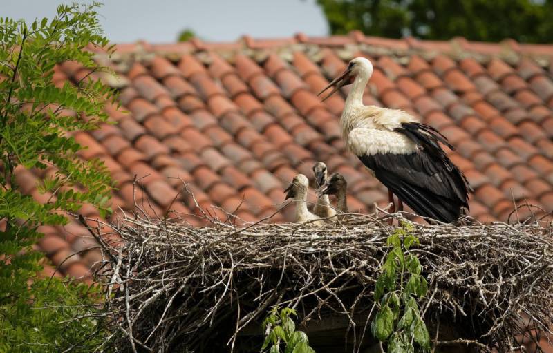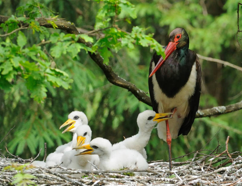 - Вывод птенцов. У аистов насиживают оба родителя, у журавлей самец охраняет гнездо, а самка высиживает яйца.