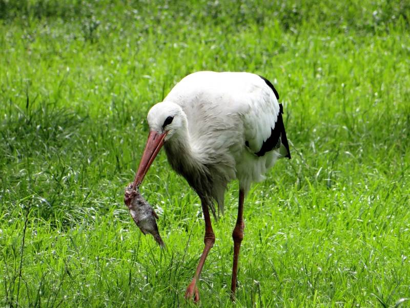 Самым же любимым «блюдом» представителей отряда голенастых являются лягушки. Аист захватывает жертву своим сильным крупным клювом и заглатывает её целиком.