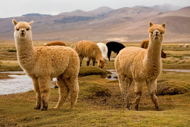Травоядные альпака были приручены индейцами Перу больше 6 тысяч лет назад. Люди использовали их шерсть для изготовления теплой одежды и одеял.