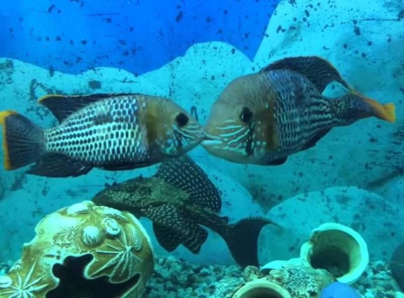 Один из них охраняет место, стремясь защитить икринки от других рыб и прочих опасностей. А второй как бы производит вентиляцию, «обмахивая» кладку грудными плавниками словно веером. Кроме того, есть среди акар виды, которые выводят своих мальков во рту. Их отнесли к отдельному роду.