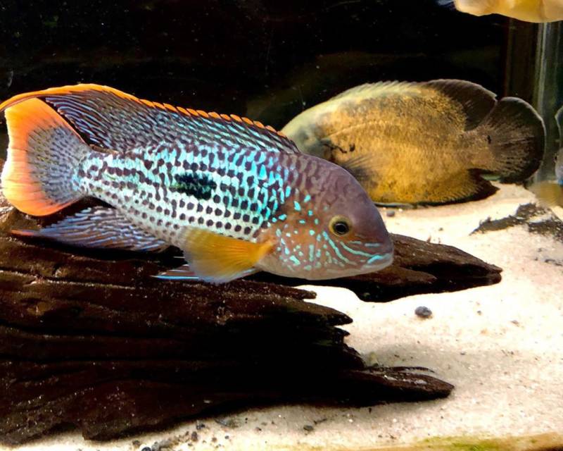 Аndinоасаra rivulatus или бирюзовая акара – очаровательная рыбка из семейства цихлид. За красивую внешность любители домашних аквариумов с удовольствием разводят этих милых созданий. Название этой рыбки взято из языка индейцев племени гуарани.