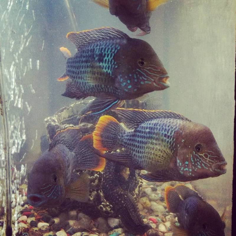 Можно содержать их в одной ёмкости с барбусами, астронотусами, чернополосыми цихлазами, рыбками-попугаями, а также с другими представителями цихлид. Бирюзовые акары не будут обращать на таких соседей внимания.