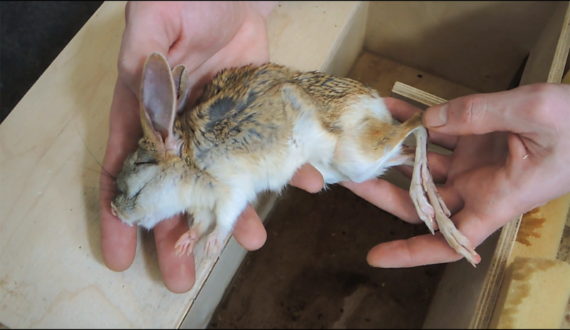 Характерная черта больших тушканчиков – крупные, вытянутые уши, длиной от пяти до семи сантиметров. Когда тушканчик выходит из анабиоза, его ушки остаются какое-то время опущенными.