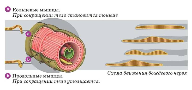 Под перетяжками скрыты специальные кольцевые мышцы, под ними — продольные. В следствии слаженного сотрудничества этих мышц червь передвигается.