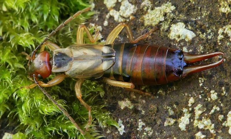 Травоядные уховертки отличаются наростами на хвосте, т.к. клешни для питания им не нужны.