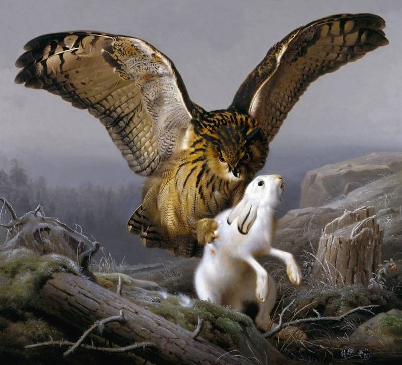 Филин птица очень умная – если потомству угрожает, какая либо опасность, они распахивают свои крылья и кружат над врагом, громко щёлкая клювом до тех пор, пока не спугнут угрозу. Если не помогает, они привлекают внимание к себе, демонстрируя например травму крыла.