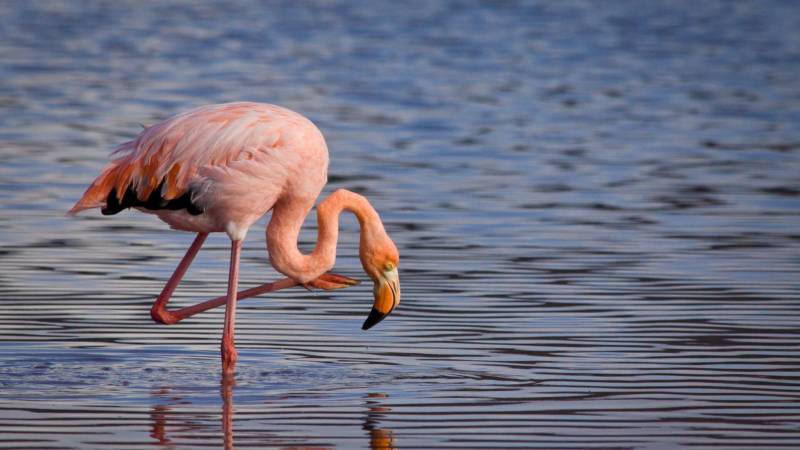 Фламинго постоянно ищут себе пищу. Они предпочитают искать её в водоёмах не с пресной, а с солёной водой. В них масса планктонных организмов и нет рыбы.