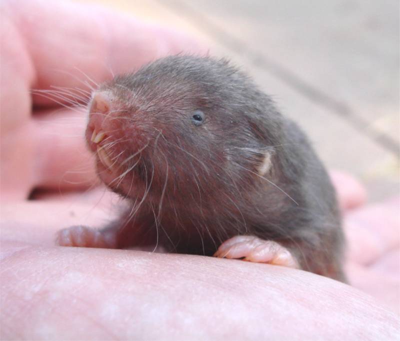 Видных ушных раковин не имеется, глазенки окутаны слоем кожи, поэтому он ничего не лицезрит. У зверька достаточно неплохо сформированы чувство слуха, нюх, вкусовые качества. Лапки и хвостик не длинные. Конечности с когтями. Имеет достаточно наточенные резцы.