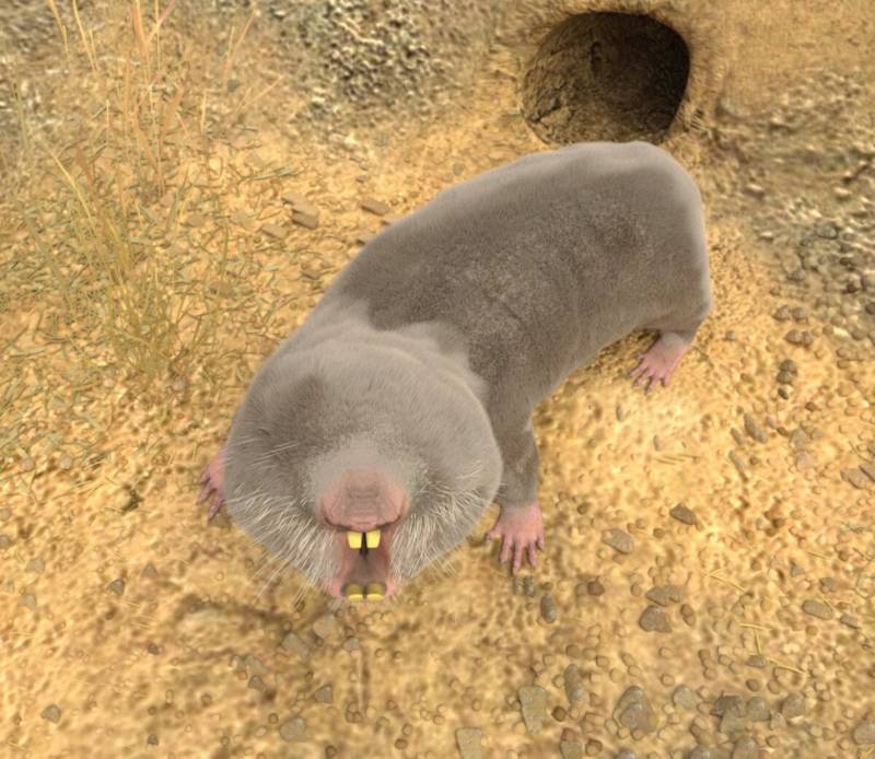 По этой причине его рот имеет складки, в связи с тем, чтобы ничего постороннее не проникало в ротовую полость в момент рытья. Грунт они вышвыривают головой. При входе в норку строятся высокие холмики, которыми животное прячет вход.