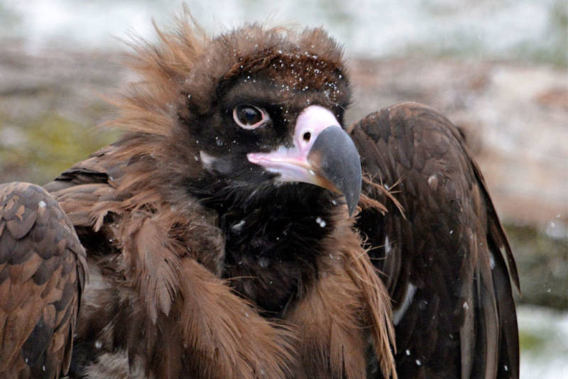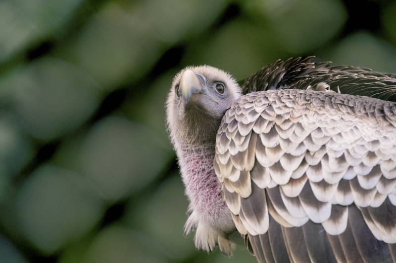 - Лысая голова не дает возможности во время еды загрязнять остальное оперение.