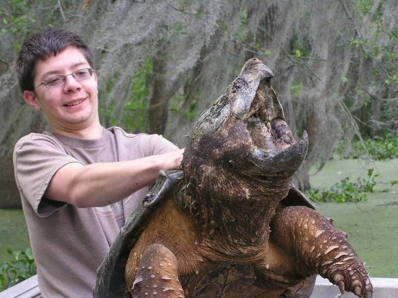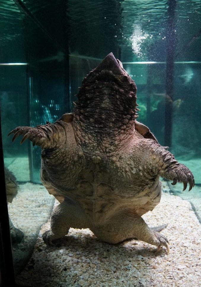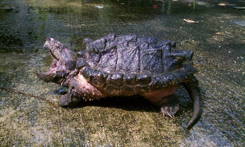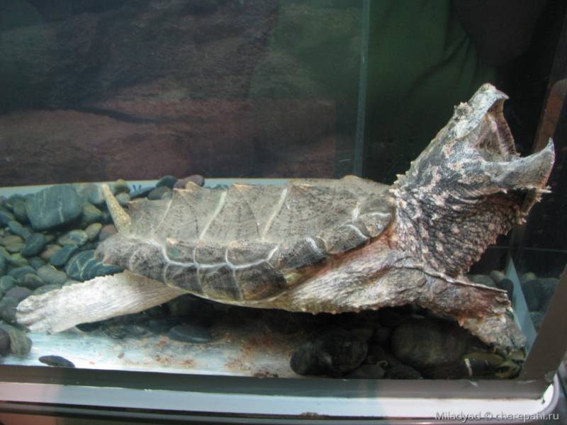 Грифовая черепаха – очень опасный хищник, обладающий мощными и крепкими пастями, острыми когтями.