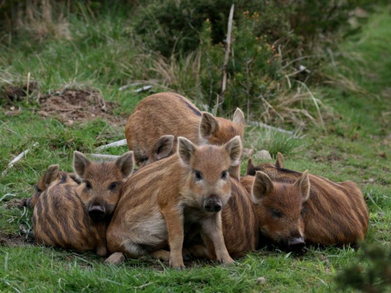 Самка выносит детенышей почти 5 месяцев. Число рожденных малышей может колебаться от 4 до 12. Чем больше появляется на свет порося, тем жестче конкурентная борьба за молоко.