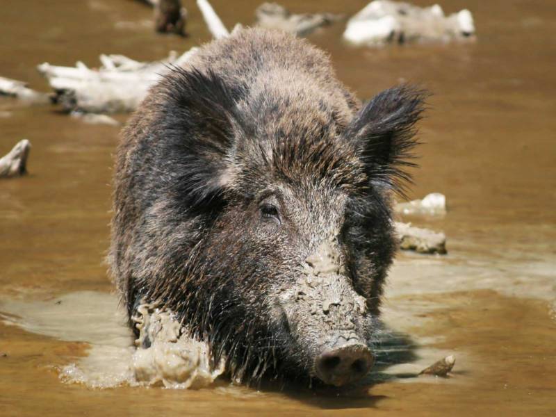 Кстати, кабаны действительно не прочь вываляться в грязи. Так они противостоят надоедливым гнусам и спасаются от температурных перепадов.
