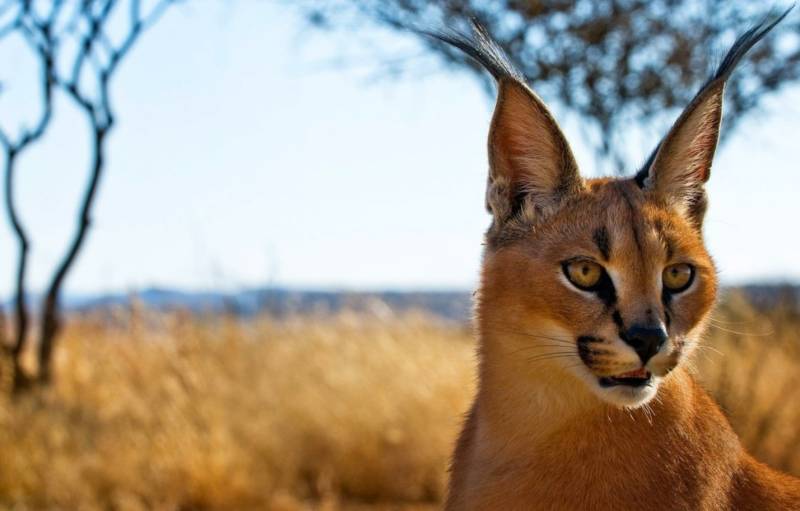 Каракала по-другому называют степная или пустынная рысь, в переводе с тюркского означает «чёрное ухо». Дикая, хищная кошка относится к подсемейству «Малые кошки». Отличается от рыси более длинными ушами с кисточками и окраской.