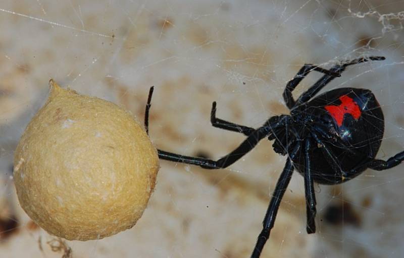Затем она ищет место для откладывания яиц. Найдя подходящий уголок, опутывает его паутиной. А на неё выкладывает и закрепляет несколько коконов, в которые затем откладывает яйца. Сама самка погибает при наступлении холодов.