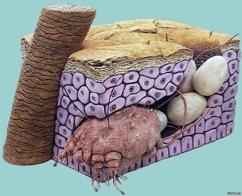 Также к такому типу клещей относятся пылевые клещи, питающиеся отмершими клетками эпидермиса – верхнего слоя кожи.