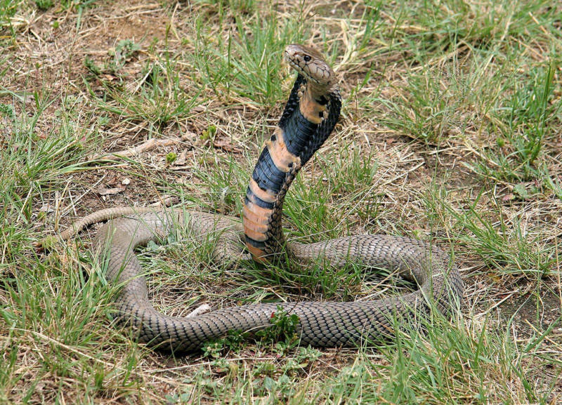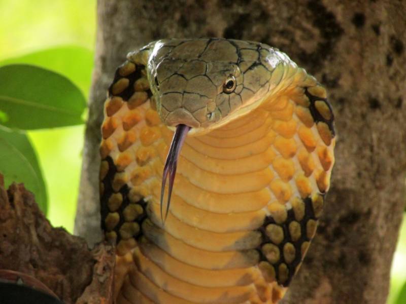 Яд королевской кобры невероятно силен и может убить человека за 30 минут. Но если при встрече со змеей тихо замереть на месте, то с большой вероятностью рептилия успокоится и уползет.