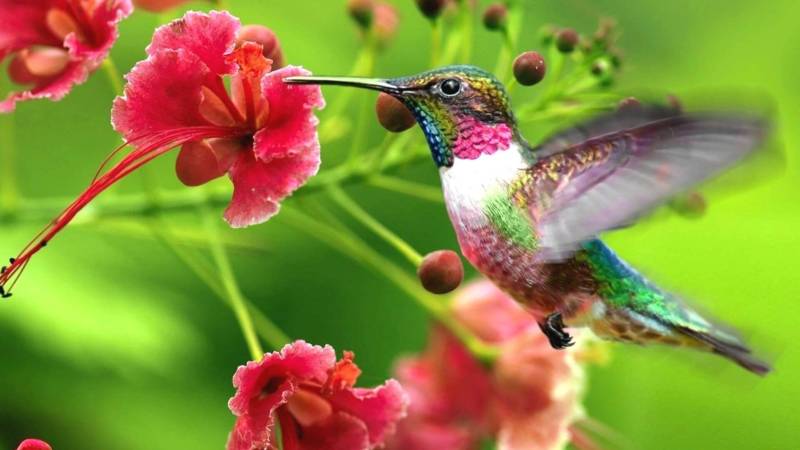 - Колибри оплодотворяют цветы не хуже, а даже лучше многих насекомых, перенося её на своих пёрышках.