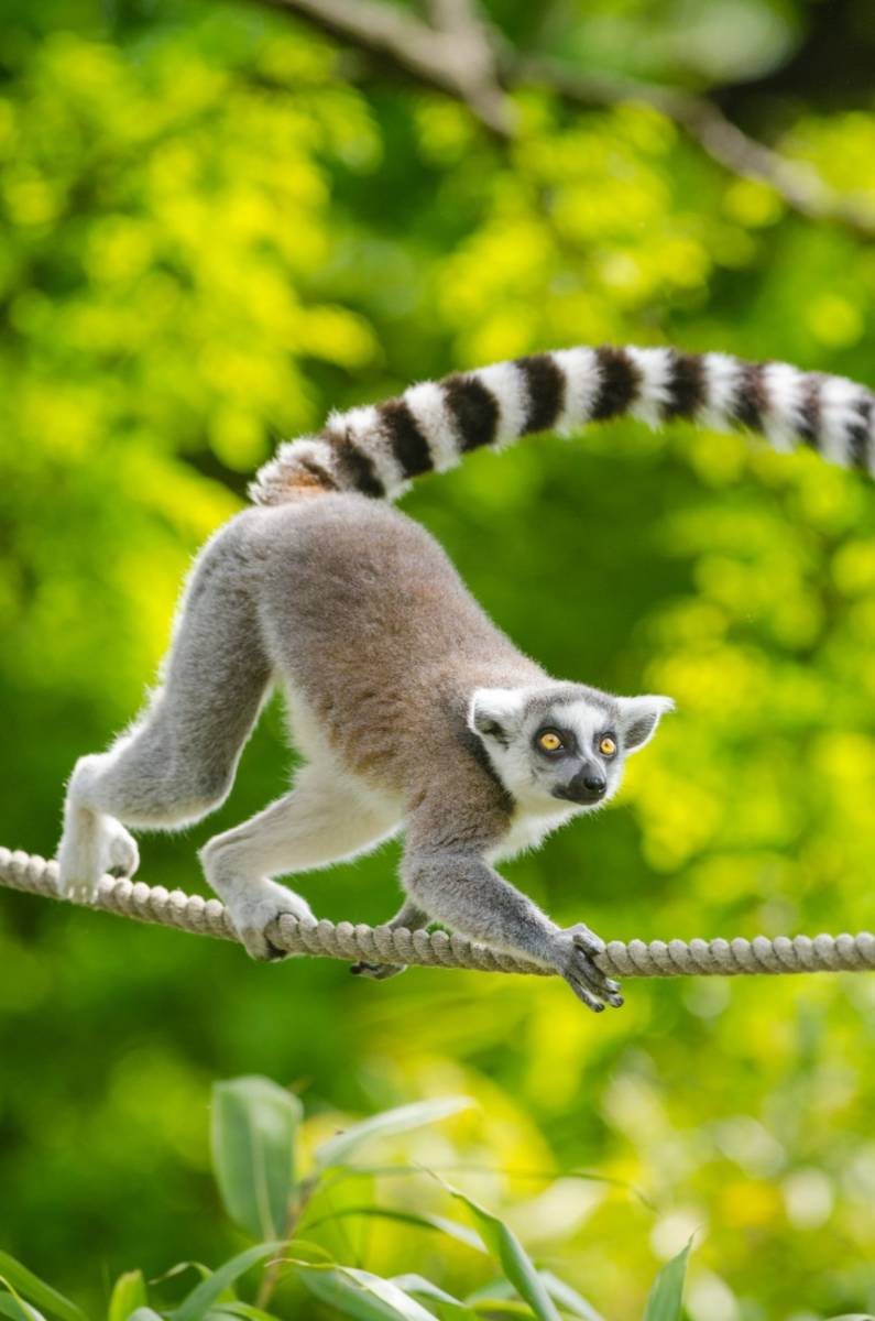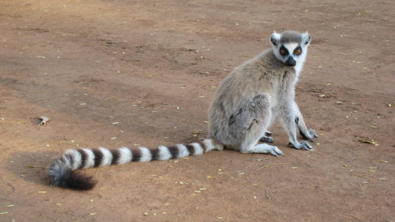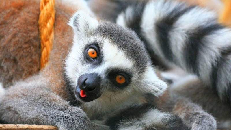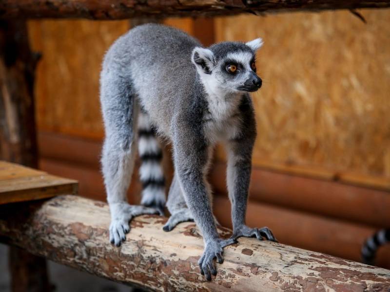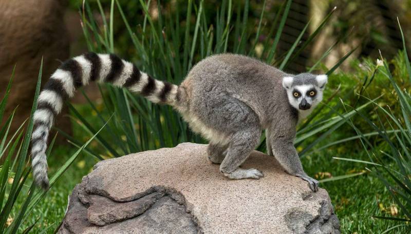 Главная примечательность лемура – его пушистый и очень длинный хвост. Он равен длине тела и применяется для общения приматов, для сохранения равновесия, и прыжков. Лишь у кошачьего лемура длинный хвост с чёрно-белыми полосками, который он держит вертикально.