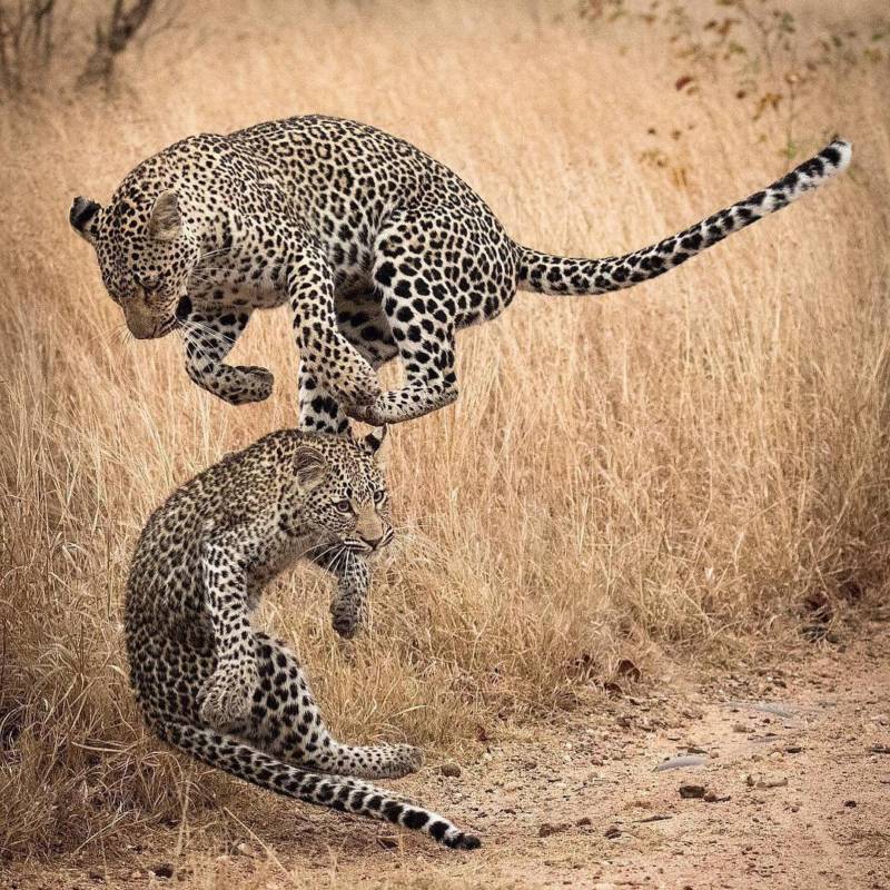 В брачный период, особо интересно наблюдать за леопардами. Они очень красиво ухаживают за самками, пытаясь доказать, что именно он достоин самой красивой особи. Нередко, между леопардами случаются драки за территорию и самку, доходя до смертельных исходов.
