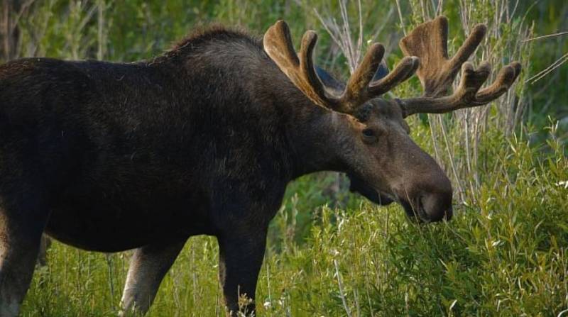 Пища сохатого зависит от сезона. Летом он питается листьями и травой. Низкорослую зелень животное не ест, потому что достать до нее не позволяет маленькая шея и длинные ноги.