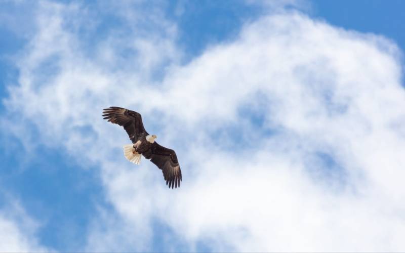 Полет нередко проходит на высоте семьсот метров. От прочих пернатых орлов можно всегда отличить по особой технике лета, когда ими проделываются взмахи с большим интервалом по времени.
