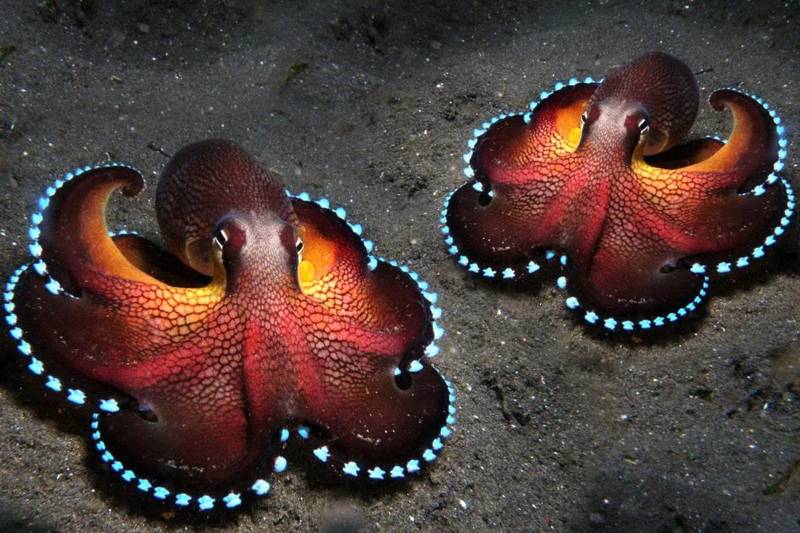 Обыкновенные осьминоги умеют менять окрас своего тела. Эта функция помогает либо замаскироваться, либо испугать хищника. Забавно, что осьминоги имеют чёрно-белое зрение.