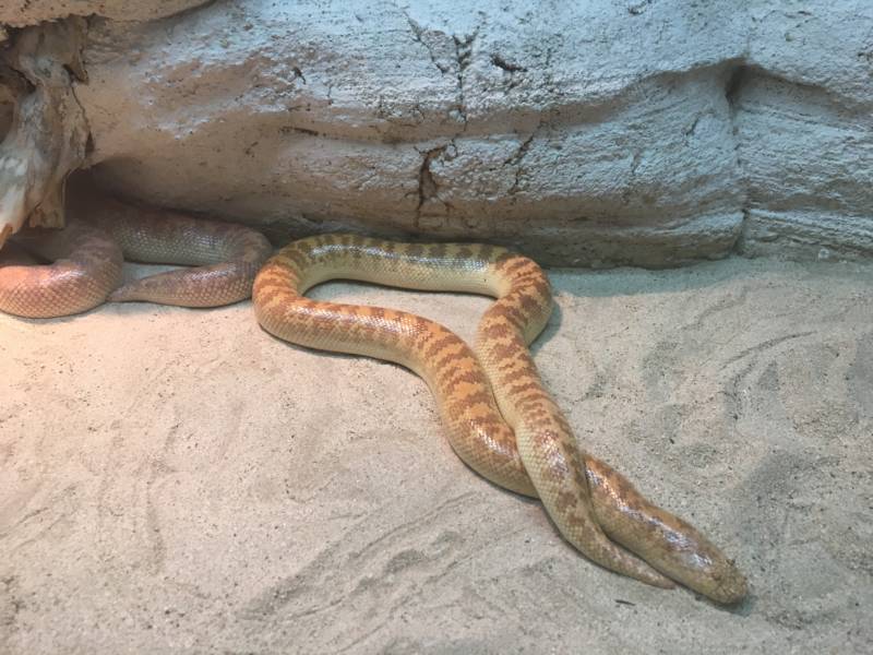 Эту змейку многие заводят в качестве домашнего любимца. Конечно, прогулять на улице не представляется возможным, но можно наблюдать плавное и ровное передвижение по песку в террариуме.