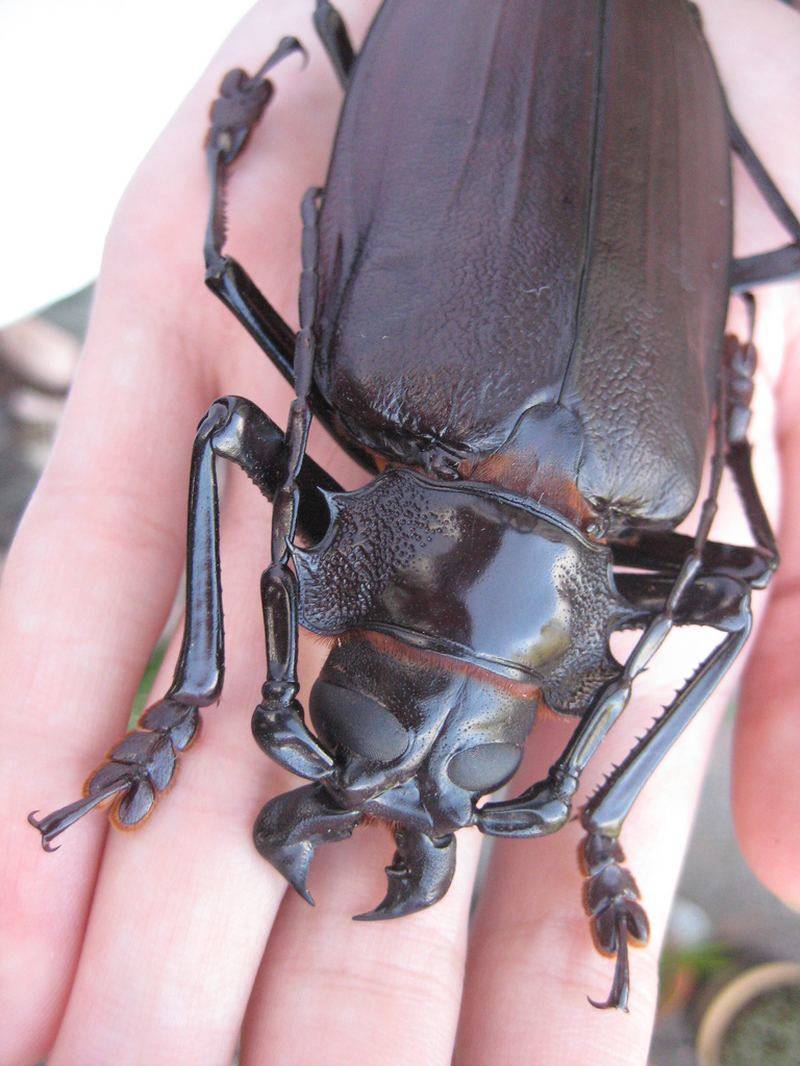 Своими сильными челюстями дровосек с лёгкостью может скусывать тонкие ветки. Но для человека он не опасен и спокойно, не кусаясь, разрешает держать себя в руках.