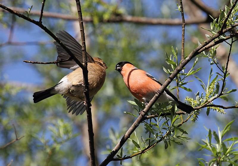 Брачный период снегирей состоит, как правило, из нескольких этапов: