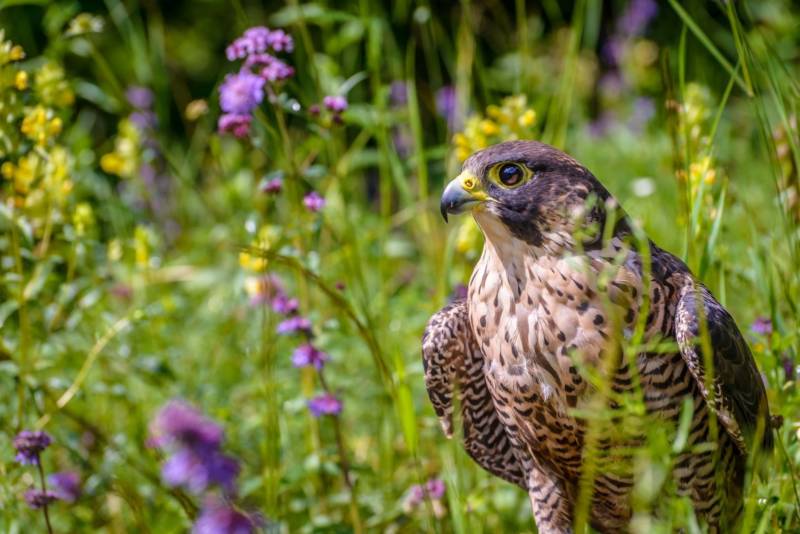 Особенно быстрым является сокол-сапсан. Заметив добычу, он пикирует на неё, достигая скорости 325 км/ч. Кроме того, сокол летает очень высоко, забираясь в небеса, куда не могут взлететь другие птицы. Сокол очень подвижный и ловкий. Из всех пернатых хищников он считается самым умным. Поэтому люди часто приручали соколов, используя их для охоты.