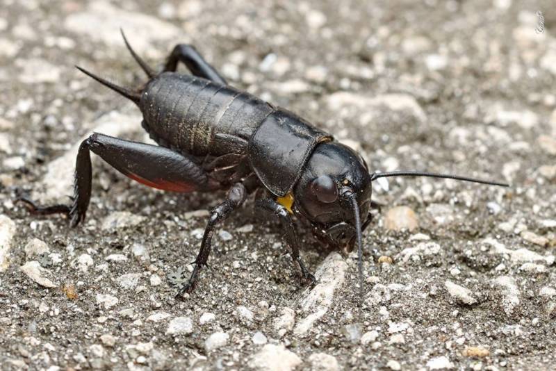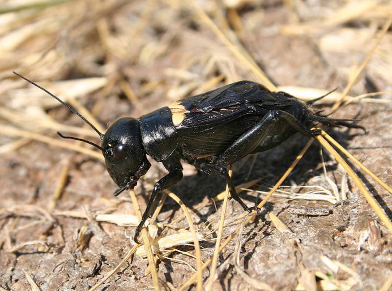 Сверчок полевой. Принадлежит к насекомым с прямыми крыльями. Любят освещенные, комфортные поля, которые расположены прямо под солнечными лучами, также, предпочтут светлые листовые и пихтовые леса. В основном обитают на Юге и в центре Европы, на западе Азии, регионах Африки.
