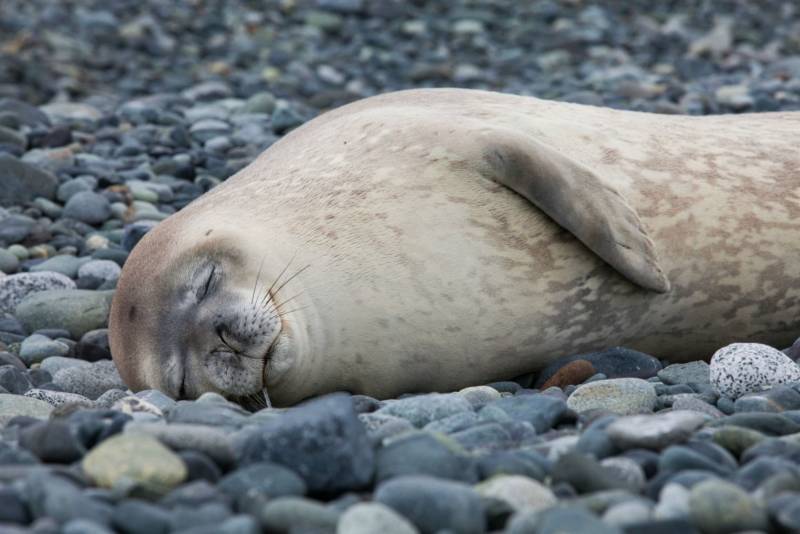 Окрас тюленей чаще всего серо-бурый с крапчатым рисунком.