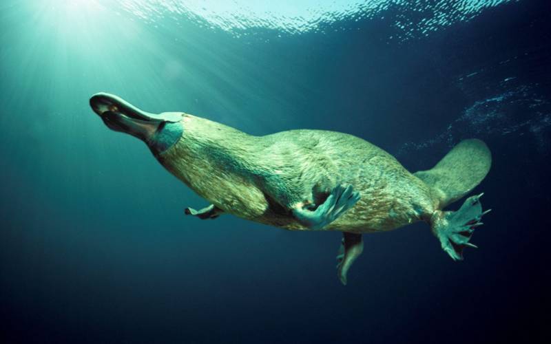 При заплыве утконос может развивать скорость до 5 км/ч. Задние лапы служат как руль, а плоский хвост координирует движение всего тела.