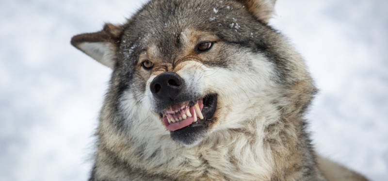 Интересно! Зубы волка имеют особое строение – они оснащены шестью резцами, двумя острыми, развитыми клыками, восемью премолярами и четырьмя обычными молярами. На нижней челюсти располагается такое же количество зубов, но на 2 моляра больше. Зубы в жизни волка играют главную роль – он не только раздирает ими добычу, но и делает много своих дел.
