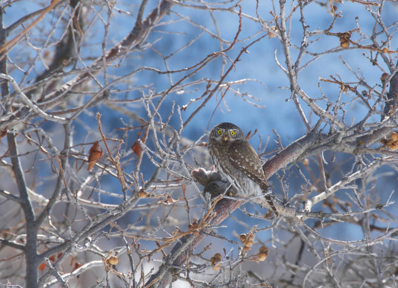 Интересно, что каждый воробьиный сыч, обладатель личного угодья для охоты. В летний период площадь составляет 500 м2, зимой до 1000 м2.