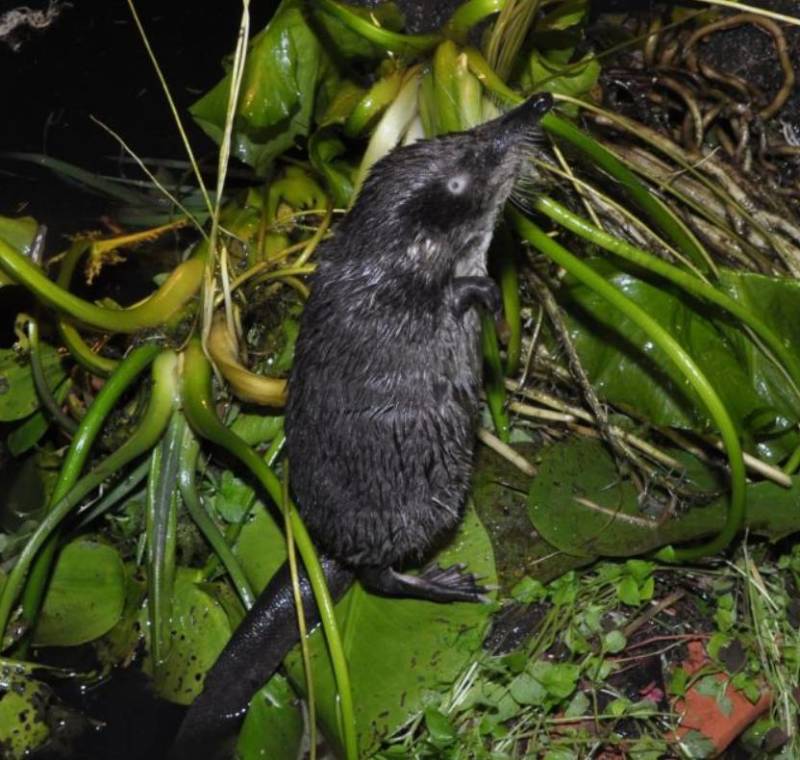 Силуэт миниатюрного животного напоминает одновременно крысу и крота, благодаря острому носу, длинному хвосту и перепончатым лапкам, приспособленным для плавания и рытья нор.