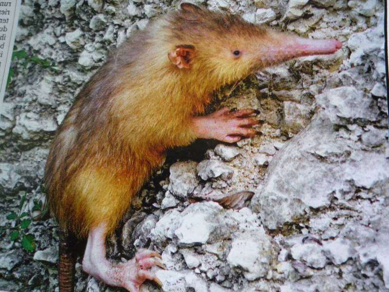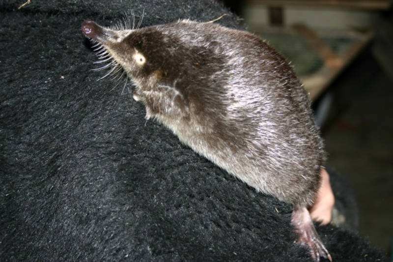Длинный нос выхухолей приспособлен для добычи мелких насекомых и напоминает хоботок муравьеда. На нем расположен самый чувствительный аппарат, в виде мелких усиков.