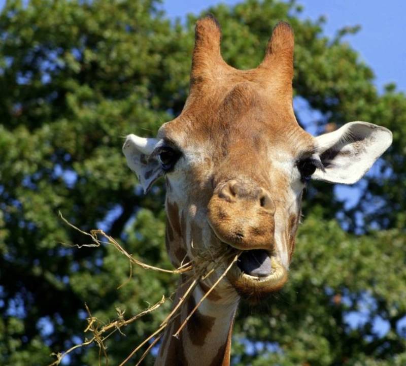 Губы животного покрыты волосками, с их помощью жираф определяет пригодность листвы в пищу и защищает нежную кожу от колючек.