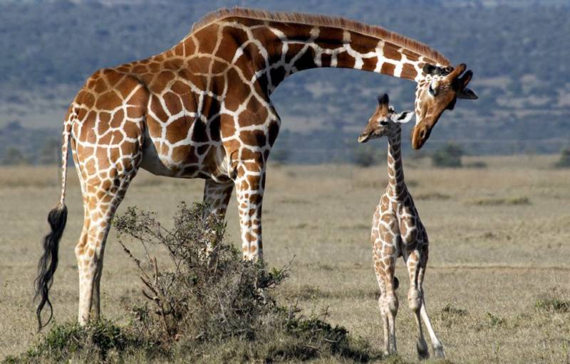 Процесс спаривания жирафов похож на лошадиный. Когда самка готова, она позволяет зайти самцу сзади и оплодотворить ее.