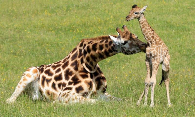 Беременность длится около 15 месяцев, после чего рождается один детеныш. Двойни у жирафов крайне редки.