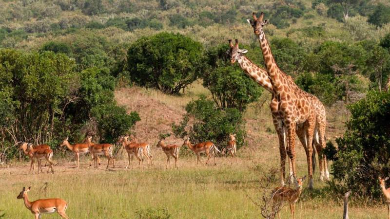 Несмотря на внушающие размеры жирафа, его жизнь в саванне небезопасна. Именно поэтому стада жирафов часто примыкают к группам других травоядных животных и перемещаются по саванне рядом с ними.